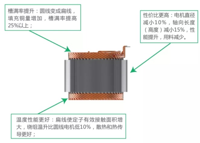 采用发卡绕组工艺,峰值功率100-130kW,峰值转矩750-1300N.m,主要应用于6-8米纯电动客车、4.5吨物流车。