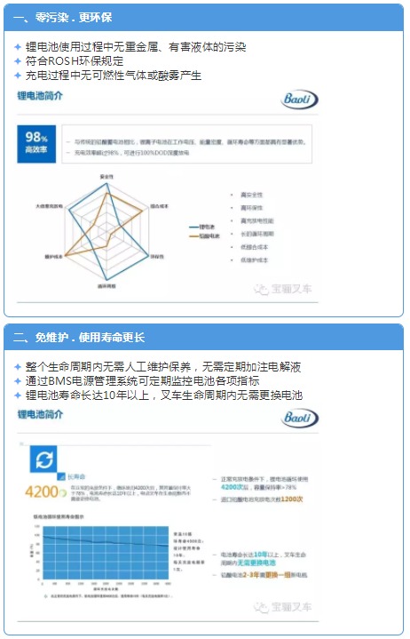 ✦ 锂电池寿命长达10年以上,叉车生命周期内无需更换电池