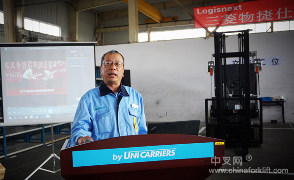 三菱物捷仕叉车(上海)有限公司副总经理高田雅章在致辞中表示:“通过举办此类竞赛,旨在展示员工专业技能水平,激发一线售后服务工程师学习技术、钻研业务的热情,提升客户满意度。通过实操性技艺大比拼和现场交车规范流程操作,普及维修保养标准及规范作业流程。今年,是三菱物捷仕优势整合,全新启航,举办的首届竞赛活动,更是新团队的执行、成长年。做行业最好的服务供应商,是我们全公司今年的奋斗目标!好的服务,需要有出色的技能和规范的服务做保证。”