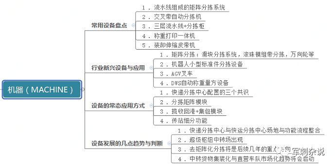 机器(Machine):分拣中心应用的设备、设备优劣、发展及保养等;