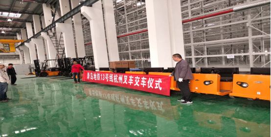2018年10月25日,伴随车辆的轰鸣声,一抹橙黄照亮了青岛城,为青岛地铁13号线打造的杭叉车辆像一个个威武的战士,等待着检阅,都在摩拳擦掌跃跃欲试的为青岛城市建设贡献自己的力量。