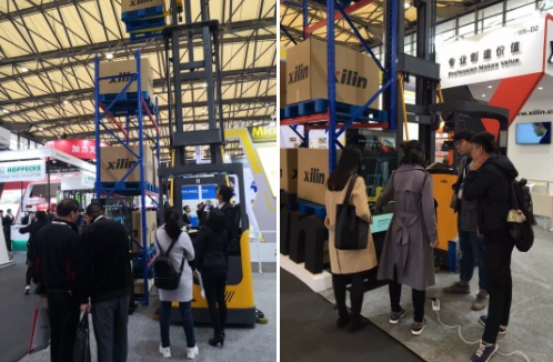 西林窄男OPD15窄通道三向叉车在万千期待中终于登台亮相2018上海CeMAT