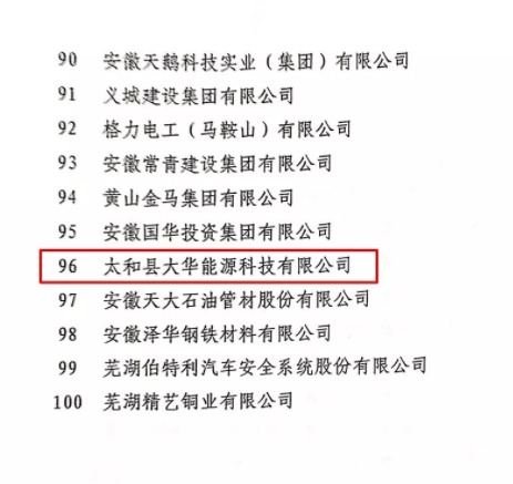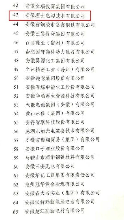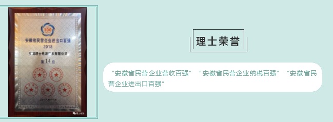 2018年11月7日,安徽省工商业联合会、安徽省经济和信息化委员会、安徽省商务厅、国家税务总局安徽税务局、安徽省工商行政管理局联合发布了“2018安徽省民营企业百强排序结果”,理士国际旗下安徽理士电源技术有限公司荣登“安徽省民营企业营收百强43名”“安徽省民营企业纳税百强45名”“安徽省民营企业进出口百强14名”。旗下太和县大华能源科技有限公司荣登“安徽省民营企业营收百强96名”“安徽省民营企业纳税百强19名”。