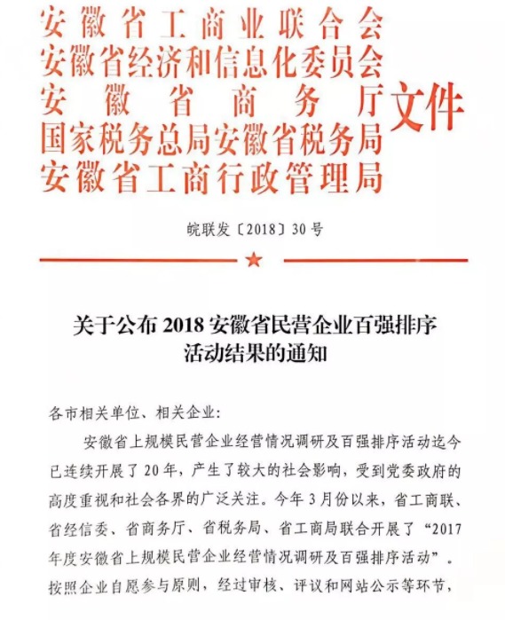 据了解,安徽省上规模民营企业经营情况调研及百强排序活动迄今已连续开展了20年,产生了较大的社会影响,受到各级政府的高度重视和社会各界的广泛关注。