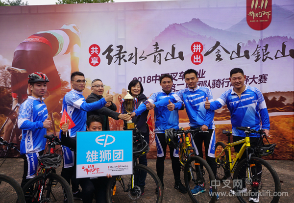比赛结束后,由浙江中力机械有限公司董事长何金辉、工业车辆分会秘书长张洁为“雄狮团”颁发了冠军奖杯。