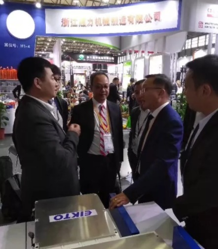总经理周德清向林德叉车亚太区总裁郭进鹏先生做详细的产品介绍