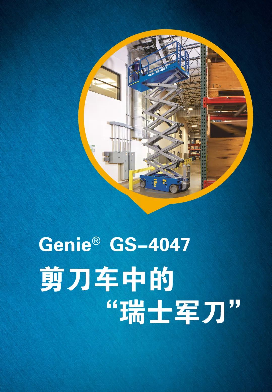 Genie GS-4047电动型剪型高空作业平台拥有更大的安全性和稳定性, 减少了操作员在高空作业时的危险系数。设备尺寸为长2.44米, 宽1.19米, 储藏高度仅为1.88米。操作员可以在70秒以内将设备快速升高到工作高度14米,可在全高度状态下行驶。平台载重达350公斤,零转弯半径便于灵活操作。GS-4047电动型剪型高空作业适用于狭窄拥挤空间的高空作业。