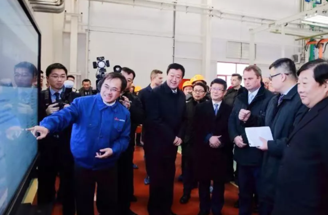 山东重工潍柴集团董事长谭旭光与马兹集团总经理卡捷里尼奇共同按下启动按钮,生产线开始试运行。