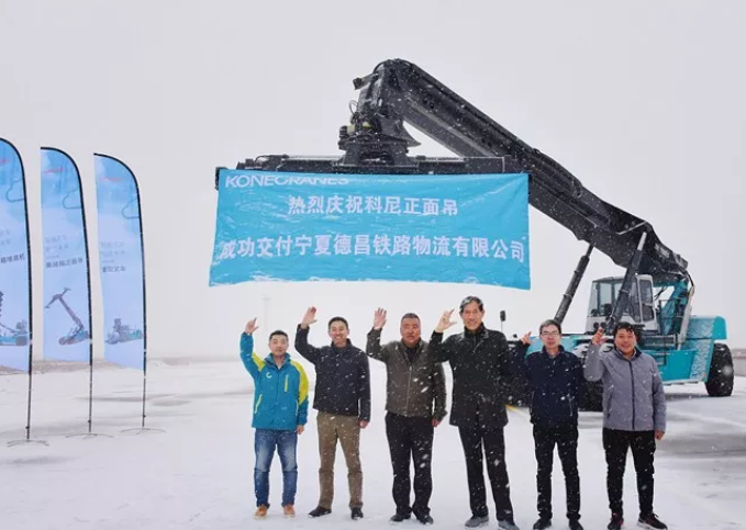 11月15日深夜,顶着一路风雪迷雾,最后一辆装载着科尼正面吊主机的大挂车驶入宁夏德昌铁路物流中心, 11月16日三位工程师经过5个小时奋战之后,一台崭新的科尼正面吊组装完成并交付至宁夏德昌铁路物流中心,至此标志着宁夏德昌铁路物流中心一期全部基础设施和硬件设备均已就位。