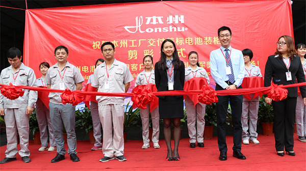 美国市场认可,开始大规模量产出口美国市场,特举办“本州电池交付美标电池装柜剪彩仪式”,这也标志着本州牵引叉车电池正式进军美国牵引电池高端市场。