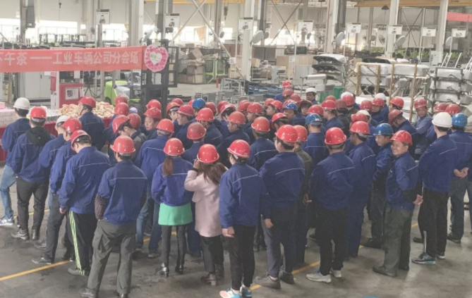 送上下午茶时,领导们对每一位员工都表达了谢意:“辛苦了!”“谢谢!”“继续加油!”“好好干!”……一句句,一遍遍。活动中的下午茶是对员工们物质上的慰问,领导们亲切、热情的讲话更是为大家送上了精神上的鼓舞!工业车辆公司感谢总部对我们真挚的问候与关怀,全体员工将统一思想、凝心聚力,共同助力公司成长!