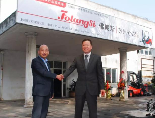 (佛朗斯股份董事长侯泽宽先生与苏州蔚蓝天设备租赁有限公司创始人缪玉永先生牵手,拉开合作序幕)