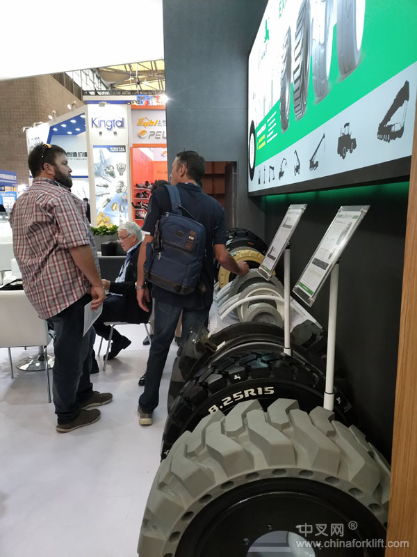 叉车轮胎、实心胎、斜交胎等系列工程轮胎产品亮相。