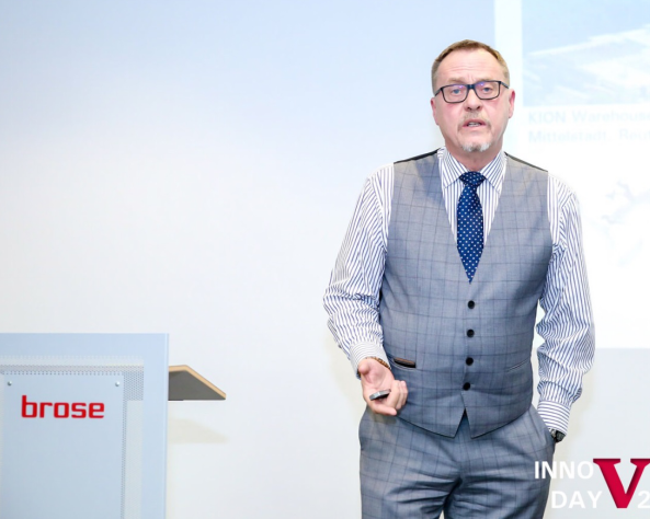 凯傲亚太区品牌与产品管理高级总监Colin Flint向博泽管理层介绍VNA窄通道方案