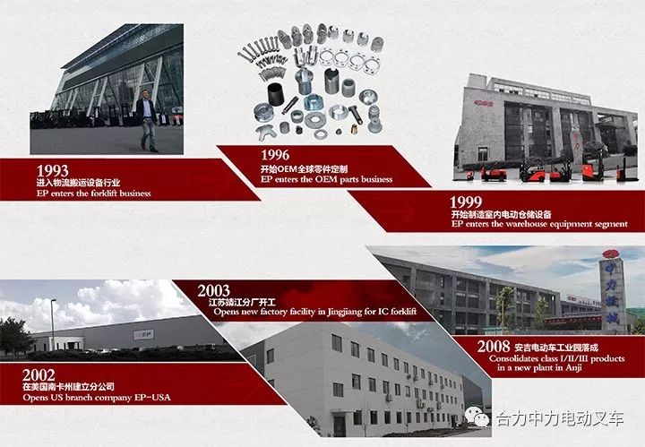 1993年进入物流搬运设备行业 1996年开始OEM全球零件定制 1999年开始制造室内电动仓储设备 2002年在美国南卡州建立分公司(国内首...