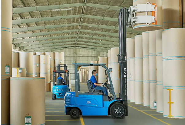 造纸行业的叉车需要在高负荷、长时间运作的工况下使用,这对产品技术与质量有着非常高的要求。根据产品介绍,比亚迪叉车配备