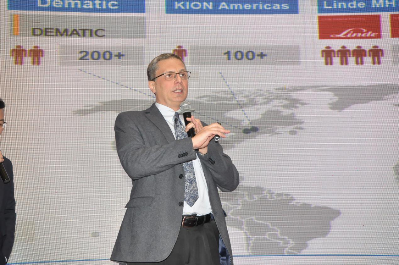 凯傲亚太技术研发副总裁 Haste Farshid在会上详细介绍凯傲集团技术与研发,他表示,未来将依托凯傲全球强大的研发资源,进行跨功能团队合作创新性产品开发流程,以满足凯傲亚太独特的多品牌不同客户的需求。