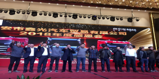 安鑫光汽车贸易有限公司黄晓龙董事长为此次会议致辞,并感恩所有支持鑫光汽贸及江淮格尔发的终端用户、厂家朋友。2018年已经过去,市场的考验更加的严峻,2019年更需要大家携手共进,联手开拓更大的市场。