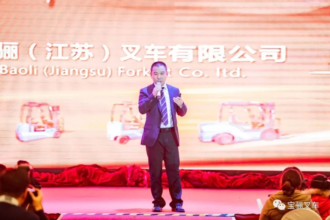紧接着,凯傲集团公司执行董事会成员、亚太区首席执行官、凯傲宝骊(江苏)叉车有限公司董事长郭进鹏先生给大家带来了新年祝福视频。亚太区战略与业务发展与控制高级总监、凯傲宝骊财务副总裁连宗庆先生带领大家一起回顾了2018年凯傲集团以及宝骊所取得的骄人成绩,肯定了大家过往的努力,并为新一年的发展规划了前进的方向。