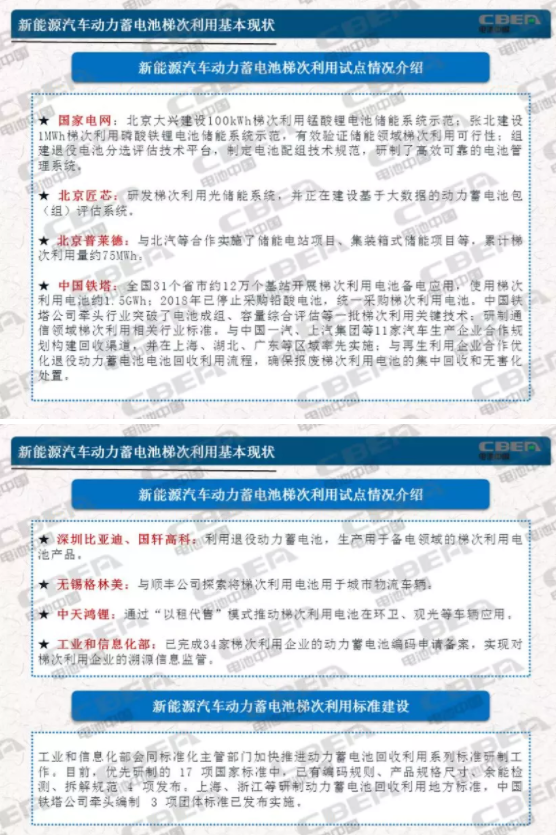 工信部认为,从发展趋势来看,梯次利用市场前景广阔,已成行业发展热点,部分企业正在梯次利用领域探索“以租代售”等新商业模式。但同时也指出,梯次利用技术虽有一定进展,但还存在诸多问题,技术上如效率偏低,电池剩余寿命及一致性评估等技术不成熟的问题;绿色选材、标准化及通用性设计、易拆解结构设计以及易梯次利用设计等方面还有不足;产业链上下游企业在通信协议、历史数据等关键资源分享方面还没有形成机制;从生态设计、生产控制及信息共享等方面看,行业还有待加强。