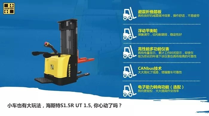 配置方面,S1.5RUT可选配站板感应,在站板与护栏不同位置时提供不同程度的速度限制以提升安全性;选配电子助力转向,降低转向力度。