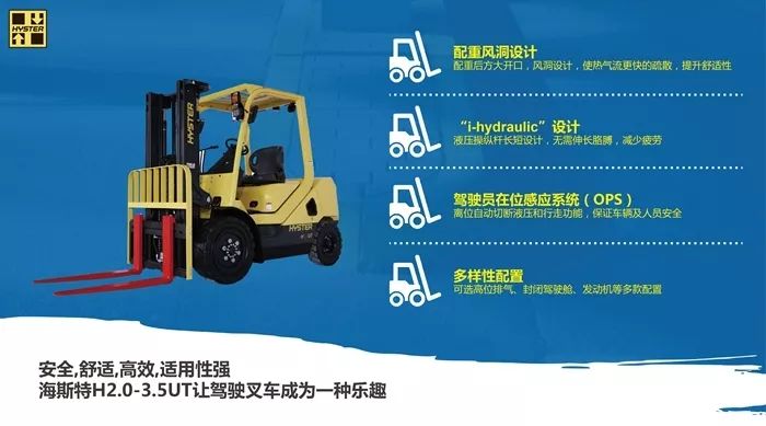 结构方面,H2.0-3.5UT的结构简单合理,易于维护。驱动桥与转向桥采用了球墨铸铁材质配合全悬浮结构,比一般叉车更坚固,承载能力更强、更耐用安全;同时,也能够提供非常轻的转向力矩,帮助提高作业人员的舒适度。