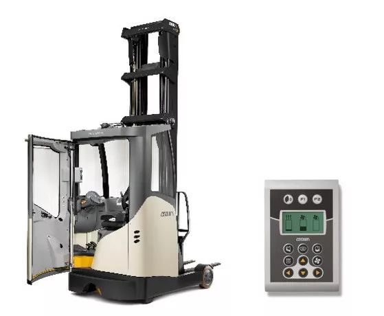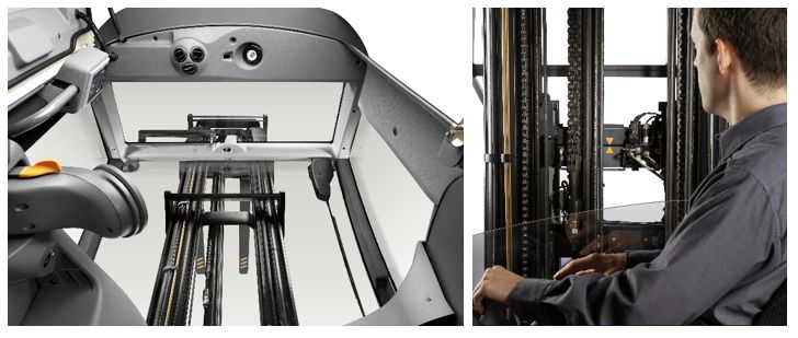 ESR 系列拥有偏置式门架,实现对承重轮和货叉无与伦比的可见度;在宽度仅为2.5m的窄通道内,依然可以自如地进行装卸托盘操作。