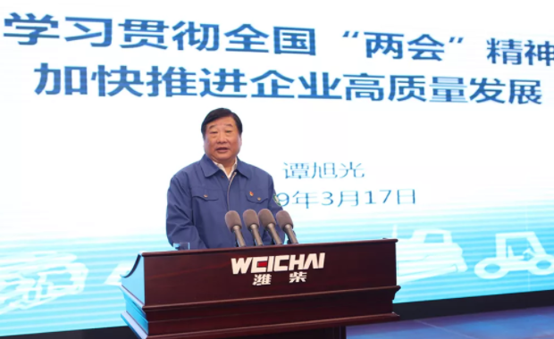 2019年3月17日上午10:00,潍柴集团组织召开学习贯彻全国两会精神大会,全国人大代表谭旭光带领干部员工解读了政府工作报告、重温习近平总书记重要讲话精神,并部署了集团重点工作。