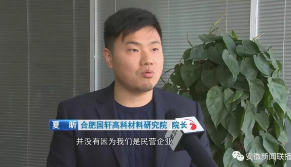 公司研发》在安徽新闻联播节目播出。国轩高科高级副总裁、工程研究总院常务副院长徐兴无出镜接受记者采访,国轩高科材料研究院院长夏昕分享政策支持在国轩高科科研工作中的显著成效。