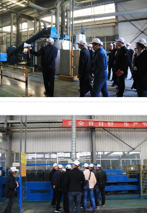 经销商抵达工厂后,在生产部人员的带领下,先后参观了理士安徽工厂极板车间、组装车间。