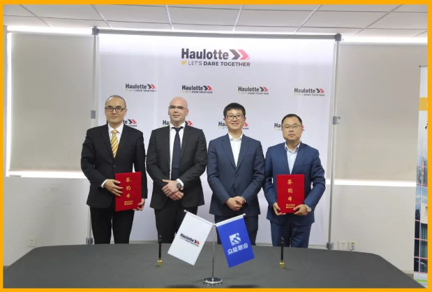 2019年3月25日,Haulotte中国(以下简称Haulotte)与众能联合数字技术有限公司(以下简称众能联合)共同签署战略合作协议,结成深度战略合作伙伴关系,达成战略合作意向。双方将强强联合,充分发挥各自在产品、服务、市场及品牌的优势,协同创造更大的商业价值和行业影响力,为中国高空作业租赁及应用领域提供既国际领先、又符合国内市场需求的全面的高空设备租赁解决方案。Haulotte亚太董事总经理达敏先生(Damien GAUTIER),Haulotte中国区总经理王志军先生与众能联合CEO杨天利先生、副总裁刘爱国先生及双方团队等共同见证了本次签约仪式。