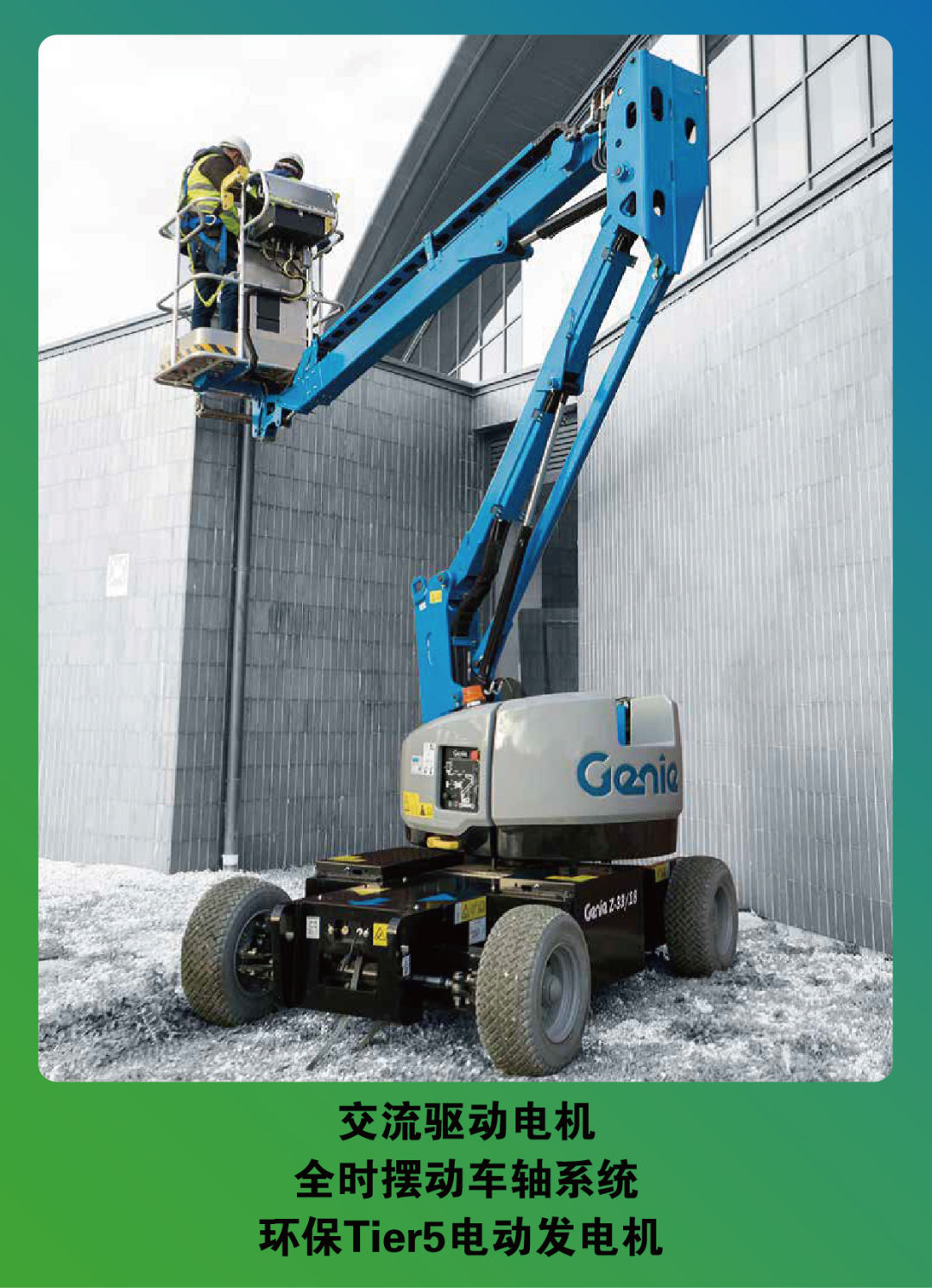 Genie Z-45 FE臂式高空作业平台环保节能、易于操作、电池运行时间更长、维护成本更低,能进一步提高租赁商的投资回报率。