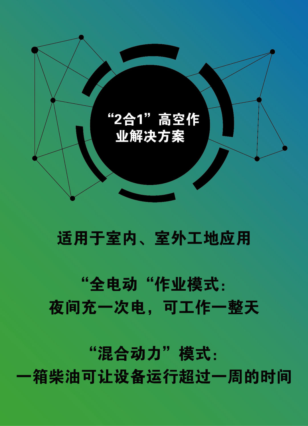 随着当今对环保的日益重视以及对15米以上高空车在工地操作严格的排放规定,新推出的Genie Z-45 FE 配备100%电力驱动,清洁环保,高效节能,可提供 “全电动”和“混合动力”两种作业模式。
