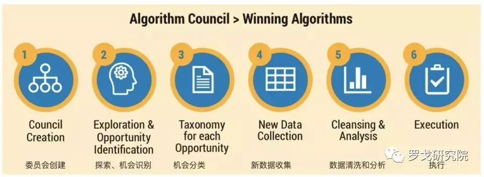 数字化供应链研究院(DSCI)为推进人工智能和算法成为数字化供应链的核心和大脑,特别成立了算法委员会。同时指出能快速开发和管理专有智能算法的公司将更具竞争力,并有能力获胜。下面图5给出了算法委员会成功的六个步骤。