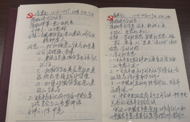 张卫星是薄板件事业部党支部第一党小组的一名普通党员,他手中A4纸大小的厚笔记本上,记录了满满一本党课学习笔记。他说:“十八大以前,我们政治学习比较少。现在每周一次的党课,我听别人讲,也给别人讲,大家还会就党课内容在一块进行讨论交流,我感觉自己学习时间比以前多了,政治素养也提高了不少。”
