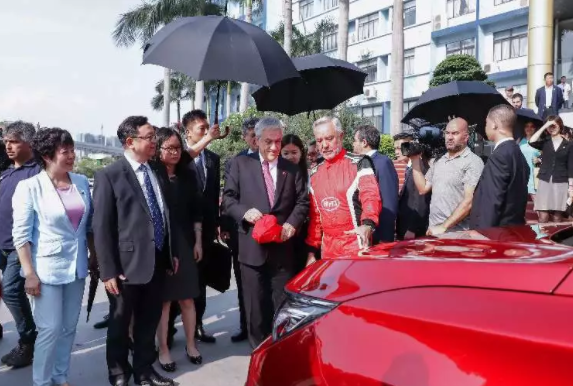 除王传福外,陪同总统参观的还有智利“国宝级”赛车手艾利索(EliseoSalazar),他是智利历史上唯一一位F1赛车手,