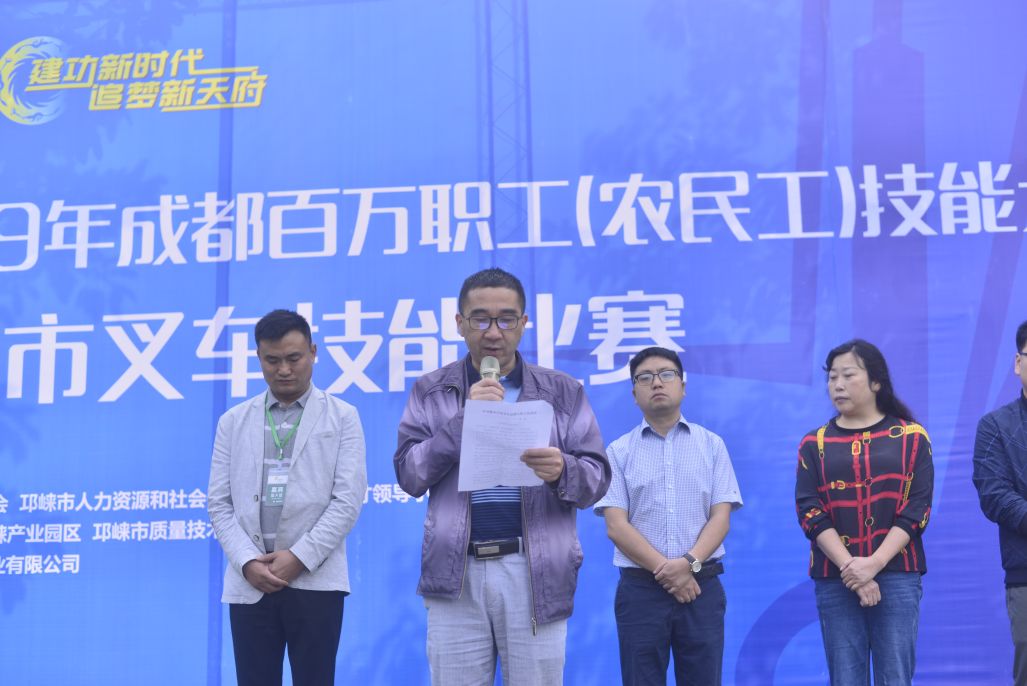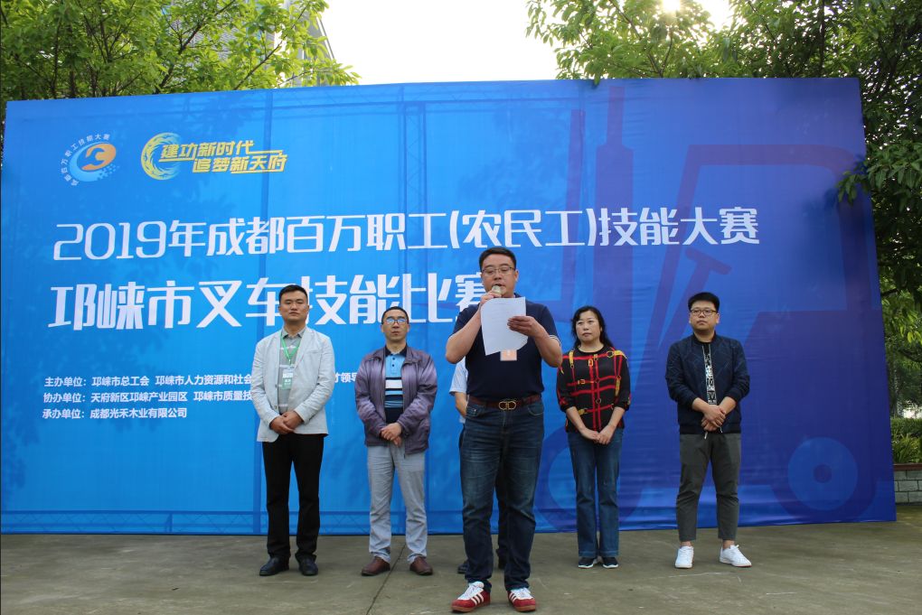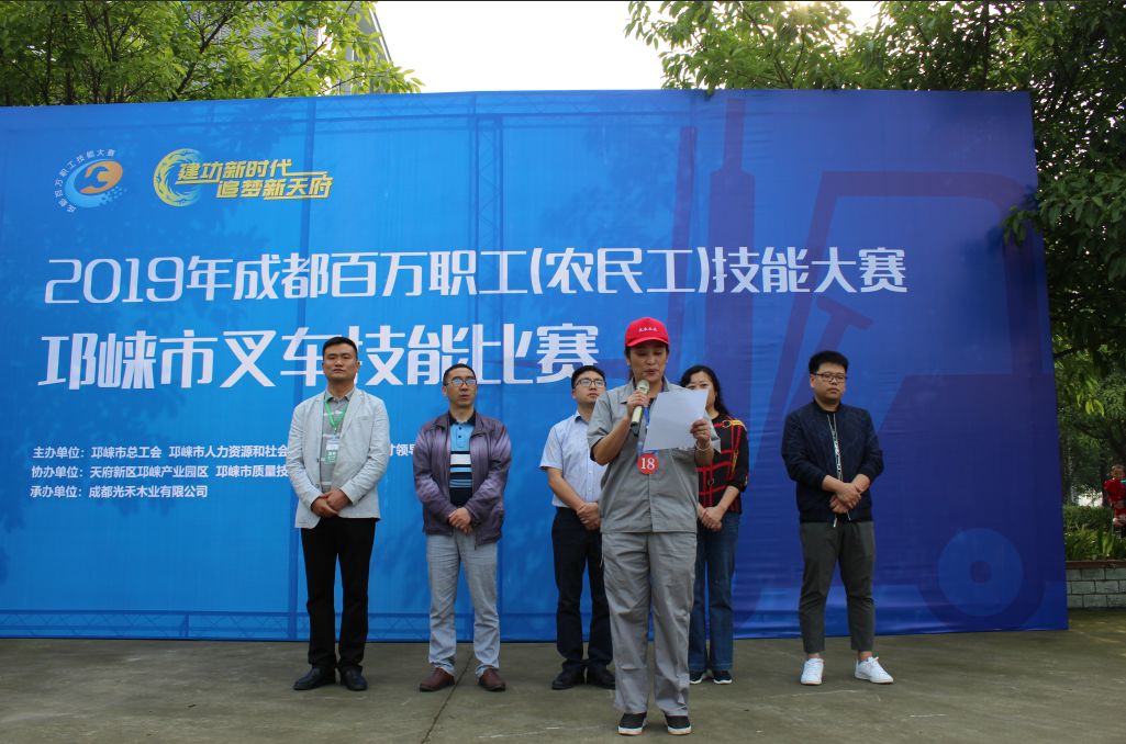 5月10日,由市总工会、市人社局和市人才办主办,天邛产业园区管委会、市质量技术监督协会协办,成都光禾木业有限公司承办的“建功新时代·追梦新天府”2019年成都百万职工(农民工)技能大赛邛崃市叉车技能比赛在羊安镇拉开序幕,邛崃市总工会党组书记、常务副主席陈庆出席开幕式并致辞,主办单位有关领导应邀出席开幕式。