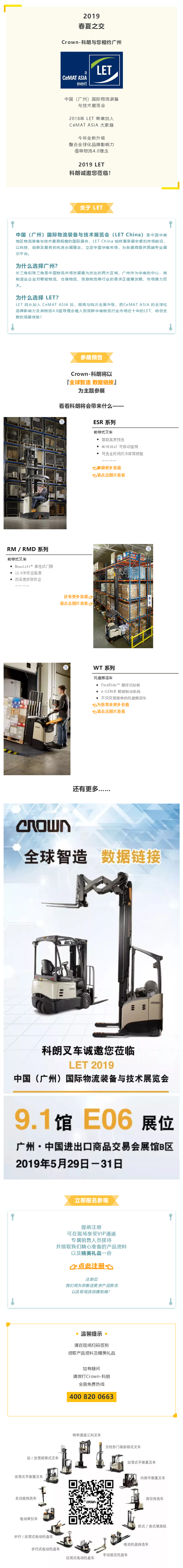 华南客户福利 | Crown-科朗将参展 2019 中国(广州)国际物流装备与技术展览会