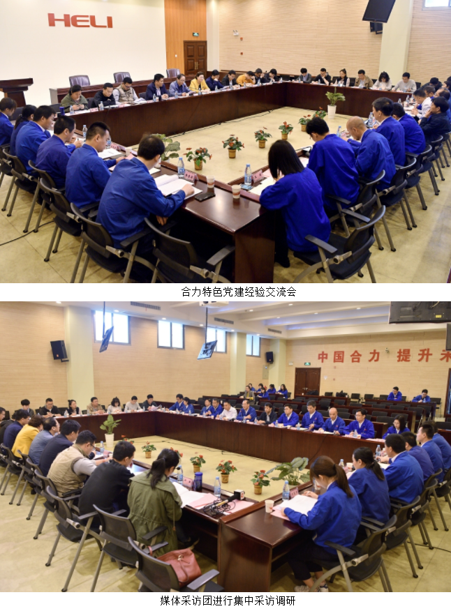品牌,值得推广借鉴”,4月23日上午,在省委组织部城市组织处、宣传部宣教处及省国资委组宣处领导的带队下,人民网安徽频道、新华网安徽频道、央广网安徽频道等中央驻皖新闻单位,以及安徽日报、安徽广播电视台、中安在线等省直新闻单位,共计11家媒体记者对集团公司围绕主业扎实开展党建、“四化”“五法”的实际运用以及合力特色党建做法等方面,深入集团公司进行集中采访调研,参加合力特色党建经验交流会,并实地参观了公司党建“五法”的落地现场。集团公司党委书记、董事长张德进,党委副书记、纪委书记许远怀代表公司党委在研发大楼一楼报告厅接受集中采访,并做发言交流。