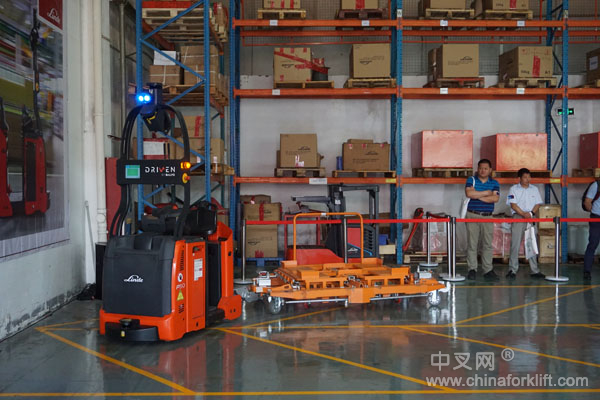在工业叉车和物料搬运领域,林德一直走在行业前列,智能化解决方案更是如此,本次活动中展示的无人驾驶搬运机器人,采用业界领先的自然导航技术,无需安装反射版,大大节省安装及后续维护成本,定位精确,调试扩展方便灵活。同时,配备三维立体安全保护,不仅检测平面障碍物,更通过激光幕或3D摄像头检测悬空障碍物,保障立体作业安全。智能调度系统确保作业的灵活性与扩展性:可单机使用,也可多辆组成机器人车队;可选多种任务触发模式:呼叫按钮、I/O传感器、调度软件等;与客户上位系统无缝对接,获取WMSERP等系统指令,智能调度车辆作业,实现系统自动化,智能化的运作。