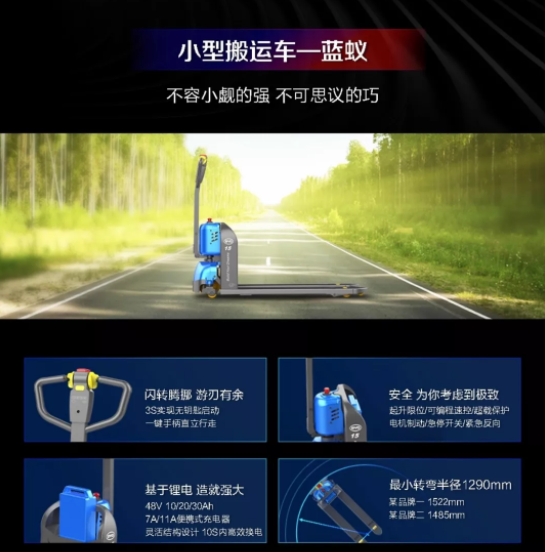 随着对搬运效率的更高追求和人力成本的逐渐攀升,手动液压搬运车固有的操作费力、爬坡难、需要人员辅助等已成为搬运的痛点,而电动搬运车所具有的操控省力、爬坡能力优、作业效率高、无需辅助人员等优点已成为客户需求的焦点。比亚迪叉车蓝蚁系列的开发正是顺应了这样的潮流,而精雕细刻于产品之中的细节则是对客户需求的敏锐洞察。特别是蓝蚁MINI更成为行业内推出的第一款成熟商用的微型锂电搬运车,填补了手动搬运车与小型搬运车之间的产品图谱空白。