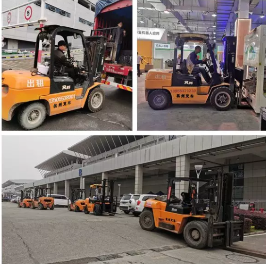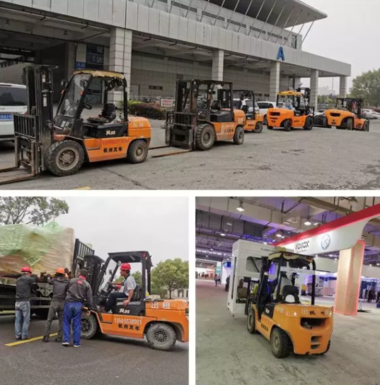 叉车为参展设备的搬运、安装提供了