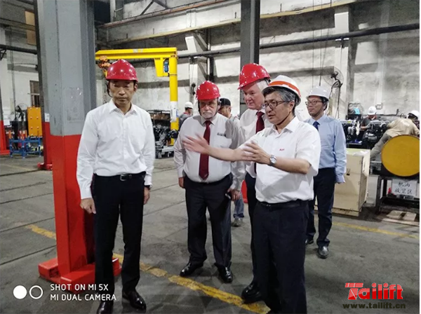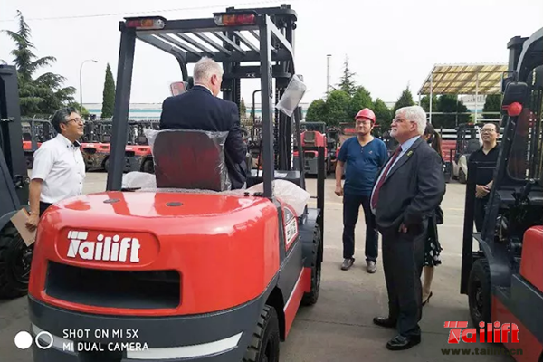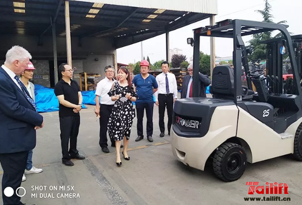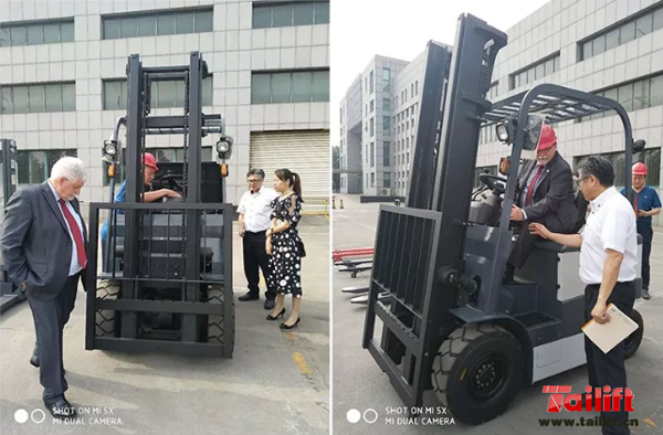 林总和正村副总带他们参观了工厂,并亲自演示了各款叉车优越的性能。