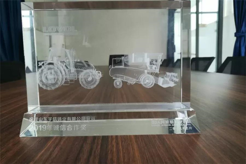 雷沃阿波斯集团是国内生产农用机装备两大企业之一,在全国有500余家供应商,而山东宇信铸业为雷沃农用机配重指定供应商。2018年度,公司为雷沃供应农用机配重重量幅度在±5%以内,其他供应商则在﹣10%以内,凭此,公司的产品质量和诚信守约赢得雷沃充分认可,在所有获评的诚信单位中为唯一符合产品重量信任单位,被授予雷沃阿波斯集团“供应商诚实守信单位”荣誉称号。