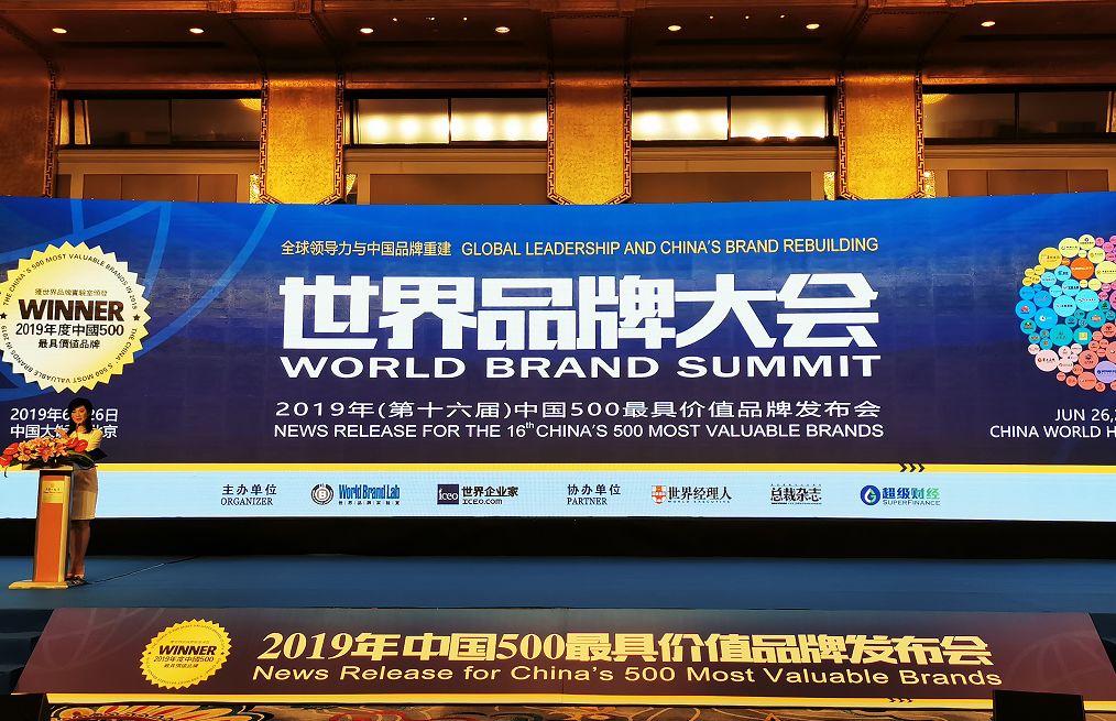 2019年6月26日,第十六届世界品牌大会暨中国500最具价值品牌发布会在北京举办。世界品牌实验室(World Brand Lab)发布了2019年《中国500最具价值品牌》分析报告。
