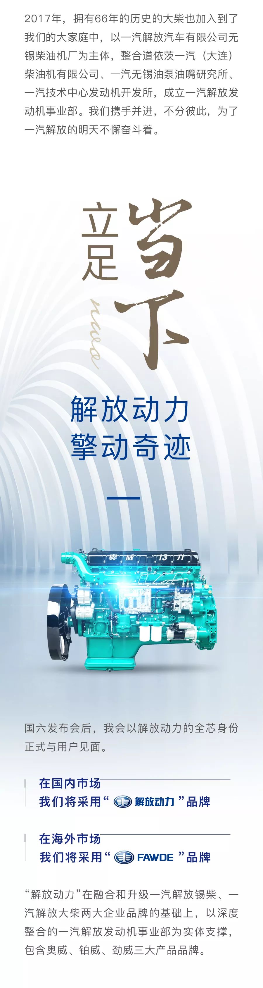 2011年锡柴进入第四次创业的新征程,提出了建设具有核心竞争力的“自主锡柴、实力锡柴、和谐锡柴”的奋斗目标。工厂正以“争第一、创新业、担责任”为核心理念,开拓创新,昂扬奋进,打造“民族品牌,高端动力”,为推动一汽自主事业,促进汽车工业又好又快发展,实现人·车·社会和谐发展做出新的贡献。