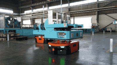 该项目团队通过多个日夜的通力合作,研发出了带翻转功能的AGV车辆,通过接料、送料和翻转倒料,实现了全程在物料流转过程中的无人化操作,开创了AGV自带翻转机构的先例。