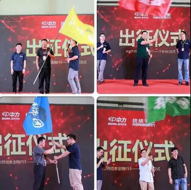 中力四大战团“战狼团”、“雄狮团”、“猛虎团”、“猎豹团”的将军们纷纷上台誓师领取出征大旗,喊着气势恢宏的口号带着战士军团纷纷奔向全国各地。