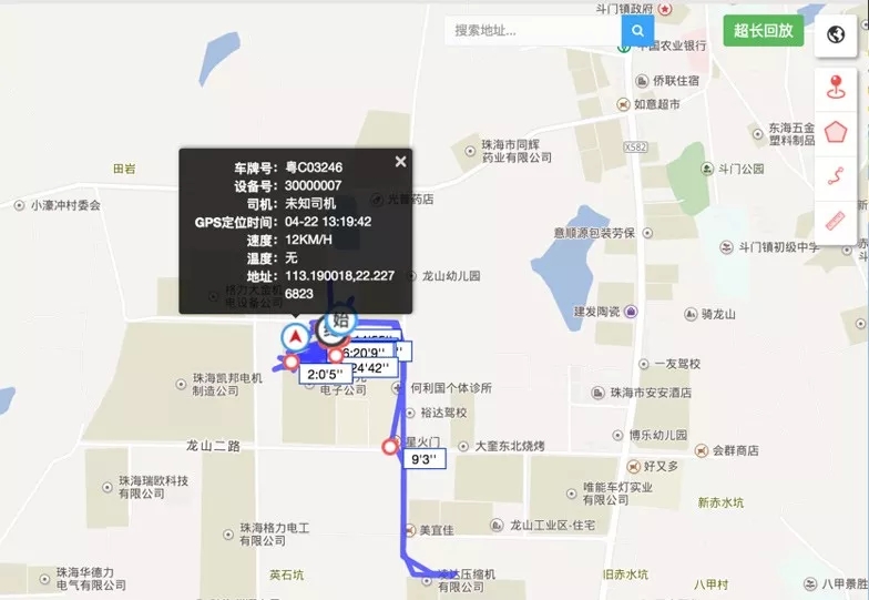 车辆跟踪和车辆定位是一样的概念,都是叉车管理人员在登录云端服务器的后台,通过车辆定位锁定查询叉车的行驶轨迹。
