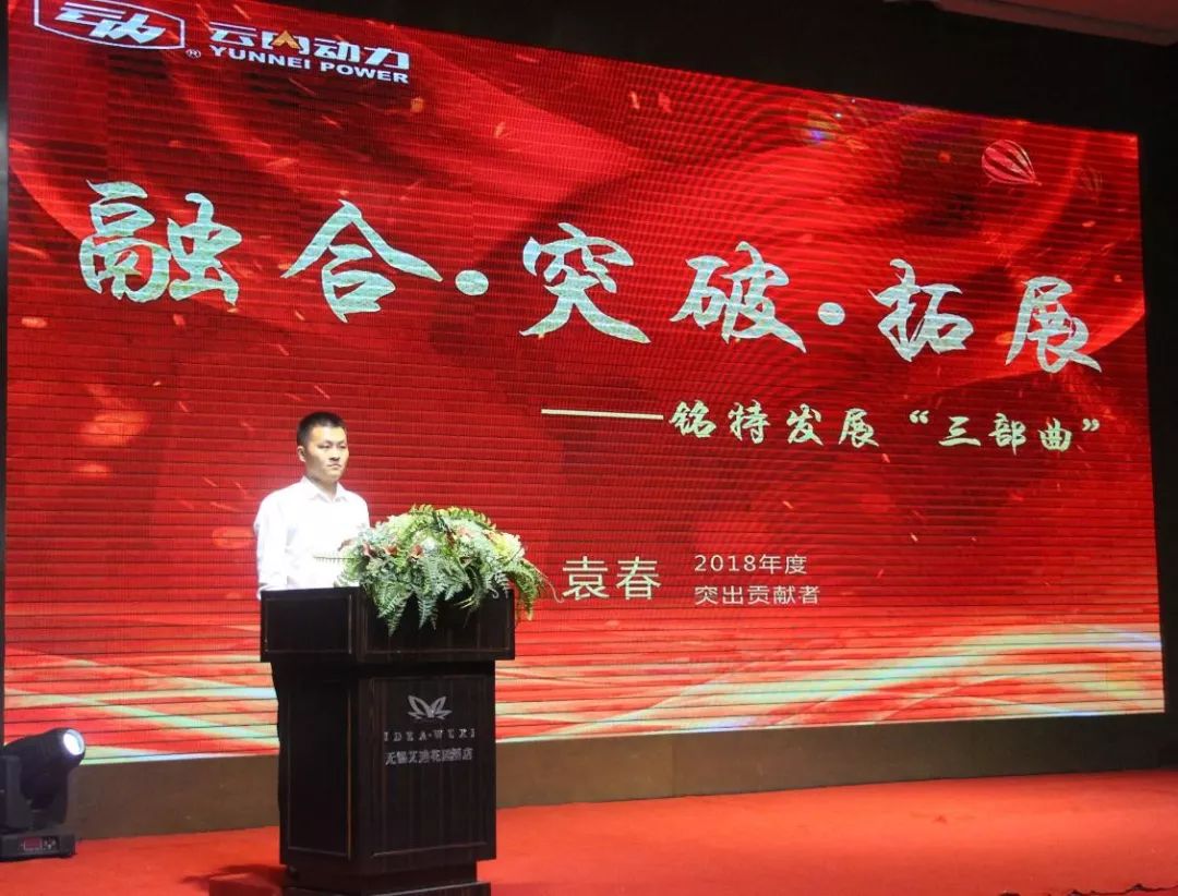 随后,公司2018年度突出贡献者袁春分享了深圳市铭特科技有限公司和整个集团公司融合、突破、拓展的发展三部曲。他说,铭特与云内的融合并不仅仅是技术、平台、产业的整合,更是企业文化、管理方式、发展目标的相互融合、相互催化、相互赋能,从而达到“1+1≥2”的效果。